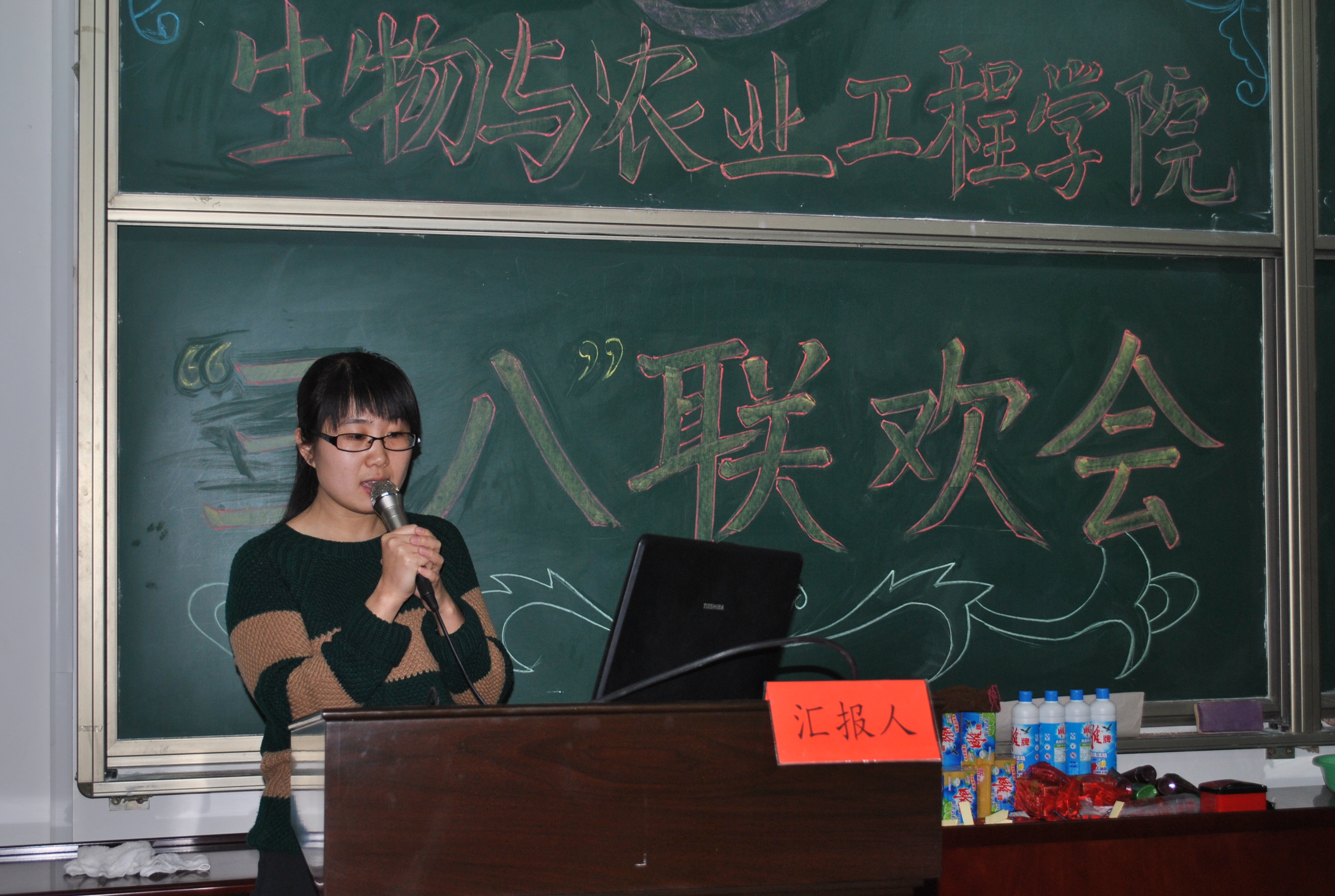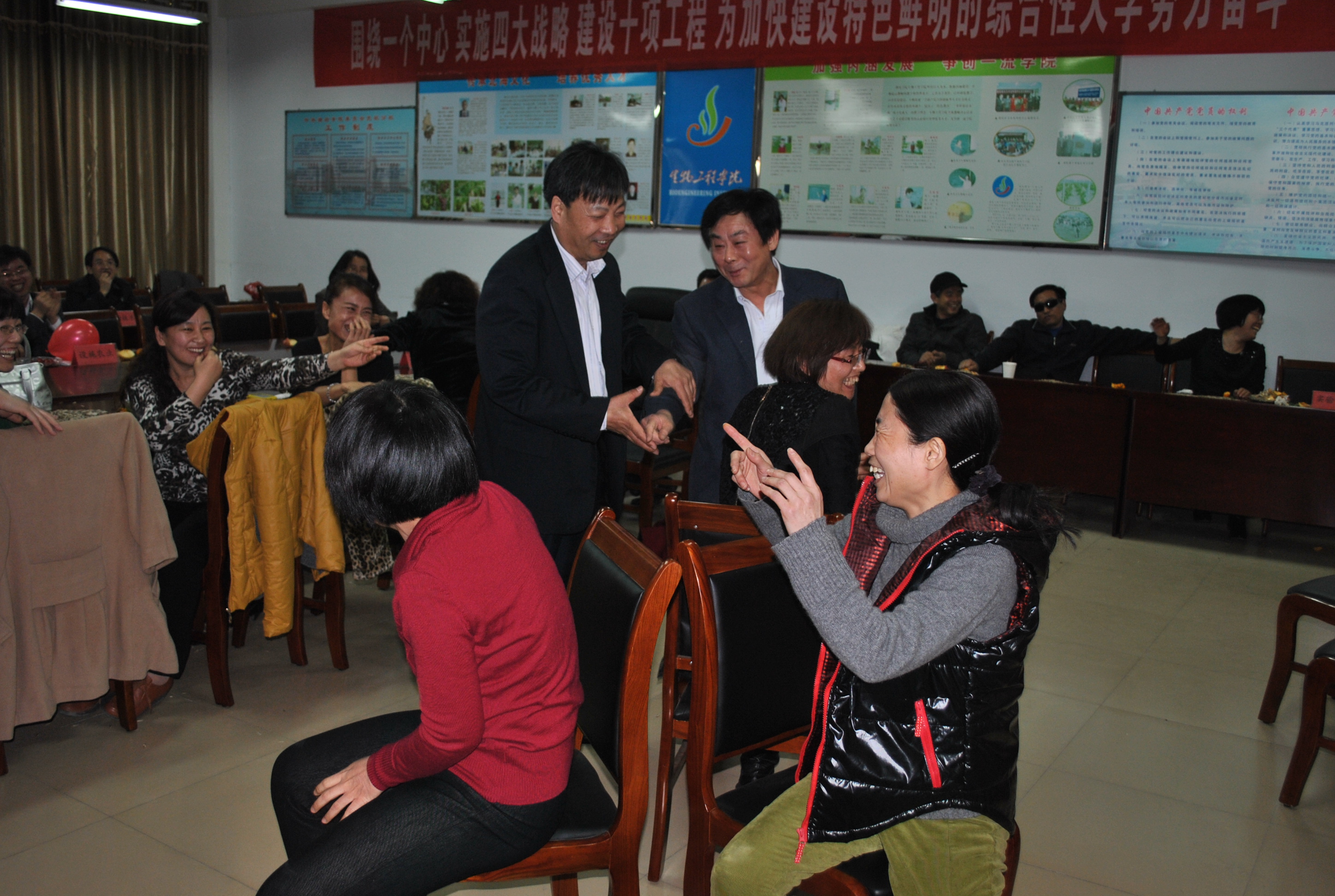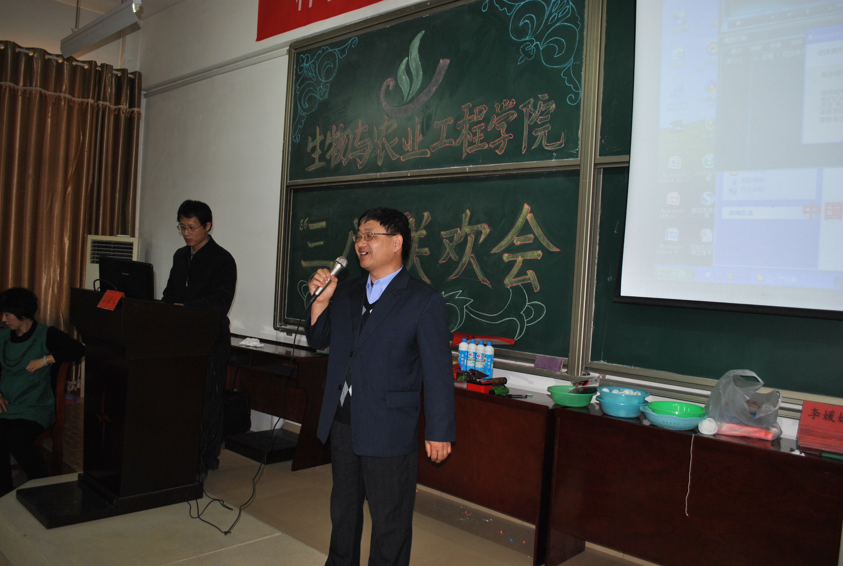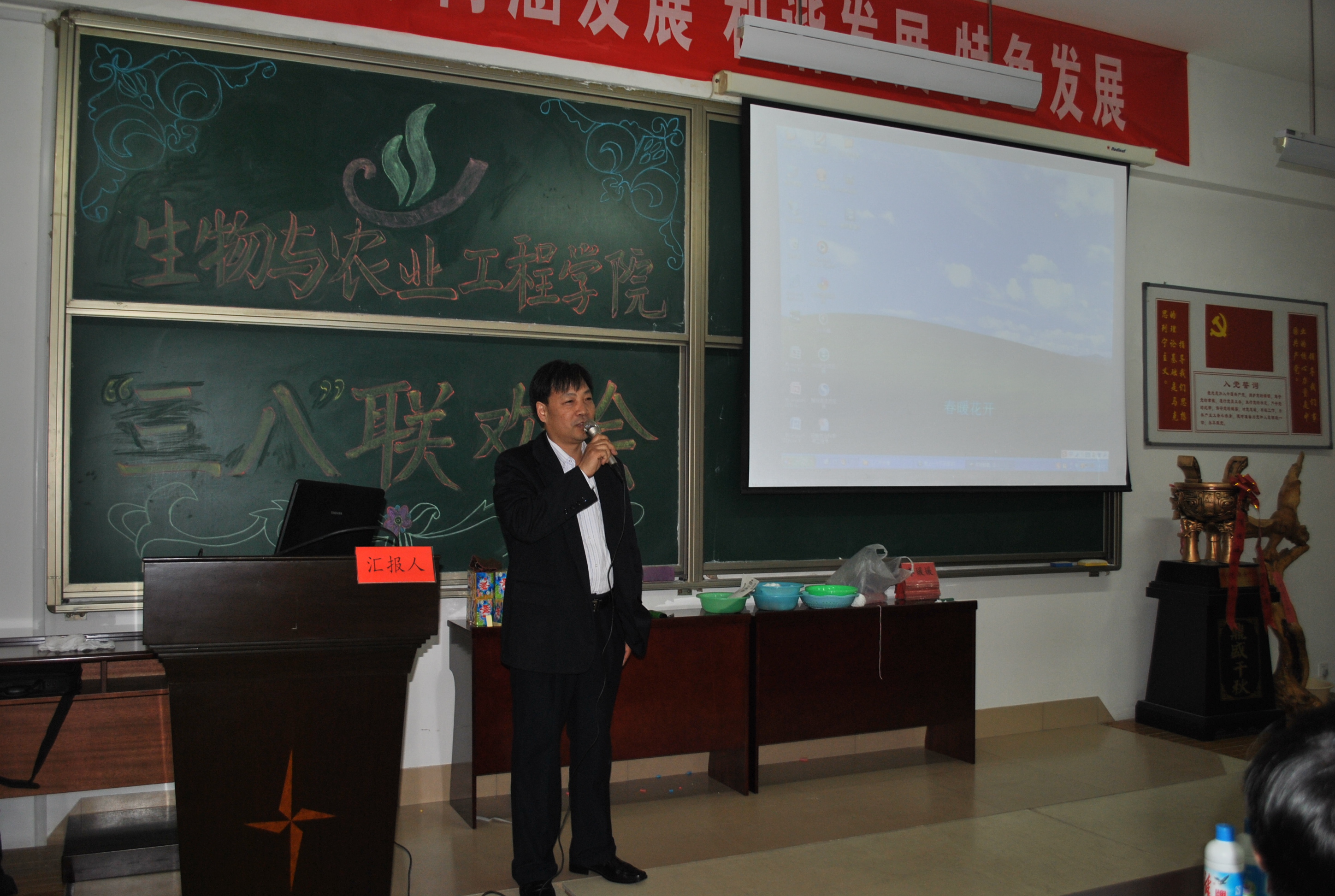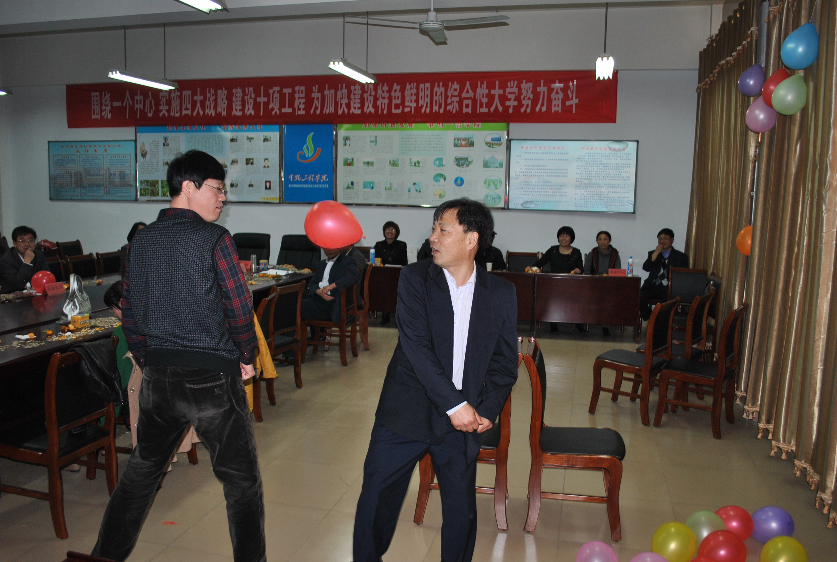 在这个春暖花开、阳光明媚的日子里,妇女们迎来了属于自己的节日。在这个特别值得纪念的日子里生物学院的全体教师相聚在一起举行庆“三八”联欢会来展示各自的才华、抒发心中的情怀。 会上,曹慧院长和王效忠书记为全体女教师送上节日祝福,充分肯定和感谢了女教师在工作中所取得的成绩和对学院的发展所作出的贡献,同时赞扬广大女教职工为学院增添了更多靓丽的色彩。 首先,各教研室精心准备了的精彩的节目,他们用嘹亮的歌声、满腔的热情演唱了一首首的小合唱《团结就是力量》、《隐形的翅膀》;还有动听的独唱《春暖花开》、《荷塘月色》、《真英雄》等歌曲,优美的旋律忍不住大家在台下一起唱;还有搞笑的笑话,获得了大家一致好评……节目异彩纷呈,精彩的表演赢得了老师们的阵阵掌声。接下来是大家共同参与的集体项目,有击鼓传花和抢凳子2个游戏。优胜者都有一份小纪念品。看到大家参加游戏活动兴趣非常高,继续满足大家玩游戏的愿望,接下来又进行了挤气球,场面热闹,整个下午的活动在温馨热闹的气氛中结束。 会后,学院为每位女教工和参加活动的所有男教师准备了一份精美的纪念品。(王晓燕)