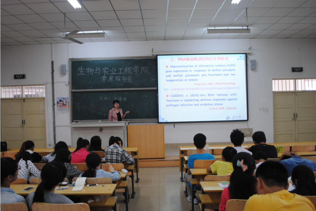 此次学术报告会使2013级生物技术1班、生物技术2班和生物科学的同学们对于植物RNA解旋酶家族基因的功能有了一定认识,既扩大了专业知识面,又增加了同学们对于科学研究的兴趣。