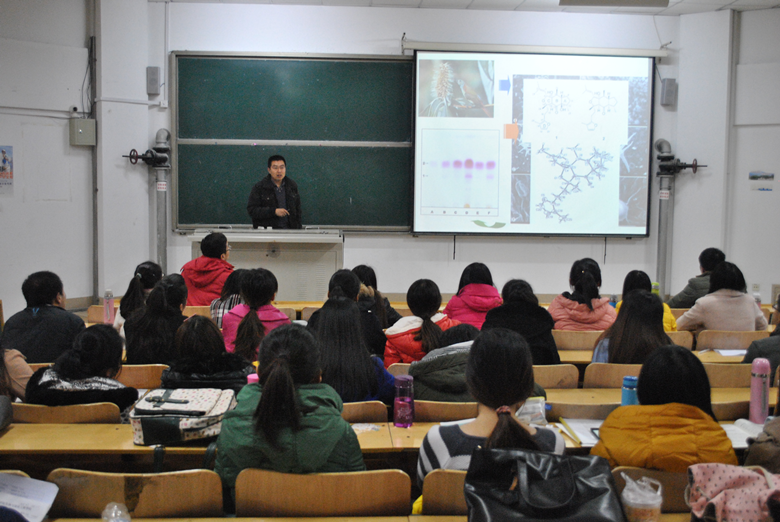 王老师主要从新结构药物研究现状、全新天然药物的发现与功能以及新天然药物的结构鉴定方法等四个方面为同学们深入浅出的介绍了近年来全新天然药物功能成分的相关研究进展。此次学术报告会使2013级和2012级制药工程同学们对于我国在新药研发进程中的缺陷,以及创新性药物研发的思路尤其是全新骨架结构天然药物分子的发现和功能研究方面有了深入的了解,既扩大了专业知识面,又增加了同学们对于药物科学研究的兴趣。