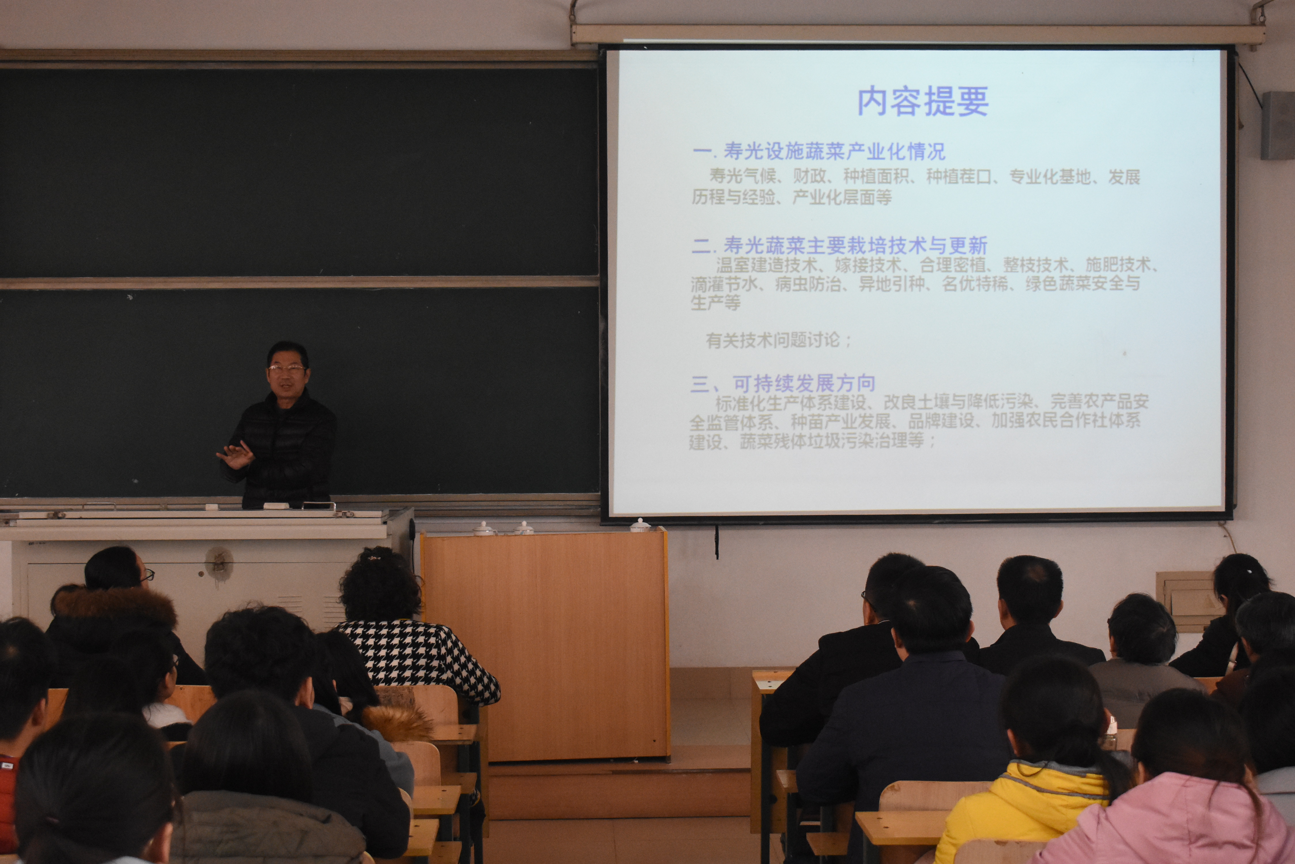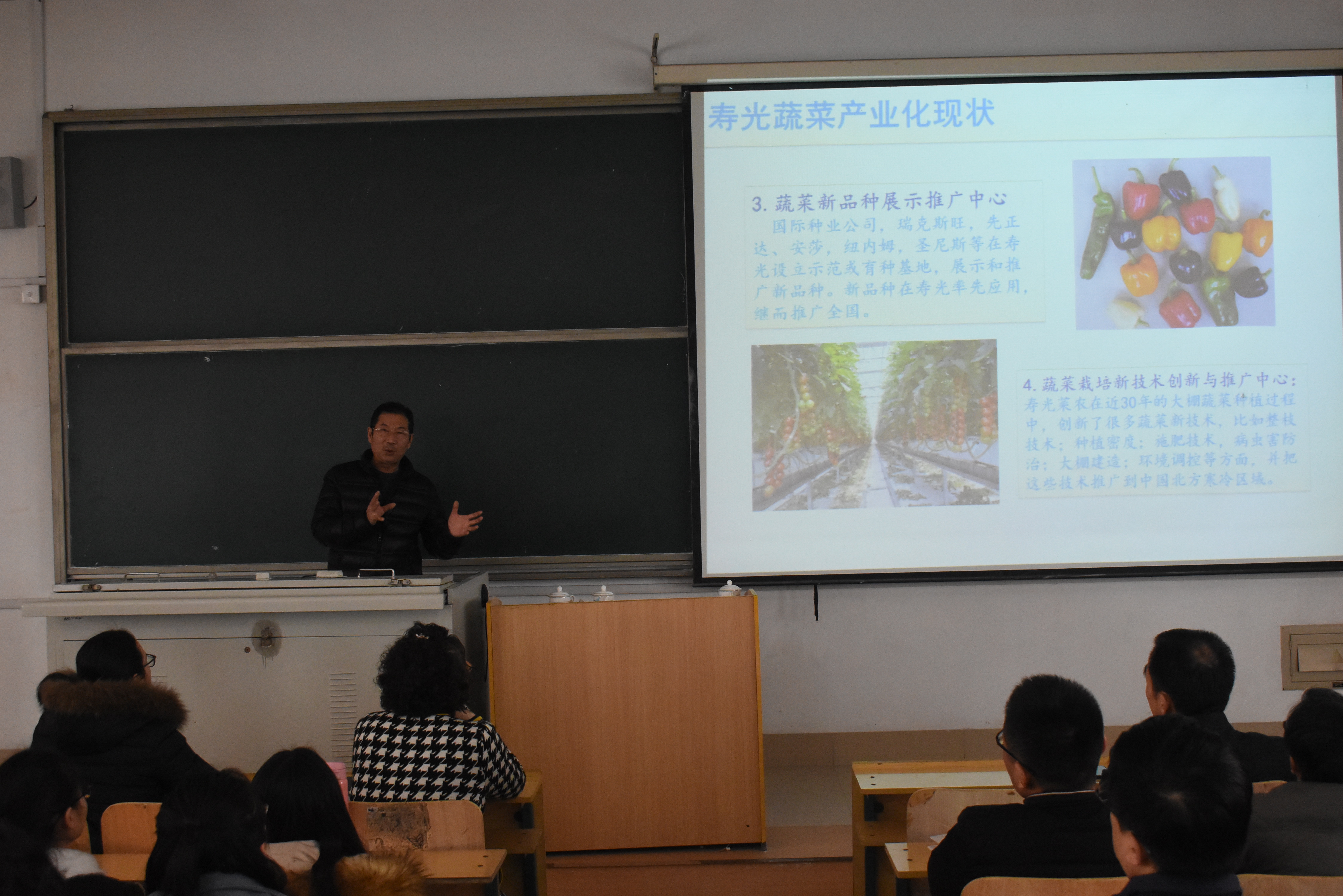 2017年12月7日上午,山东寿光蔬菜产业集团潘子龙研究员应邀为生物与农业工程学院做了题为“寿光设施蔬菜产业与技术概要”的学术报告。部分老师及180多名学生参加了报告会,院长曹慧教授主持了报告会。