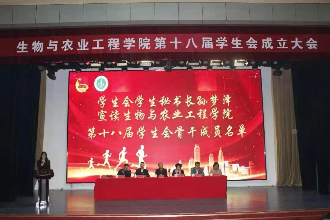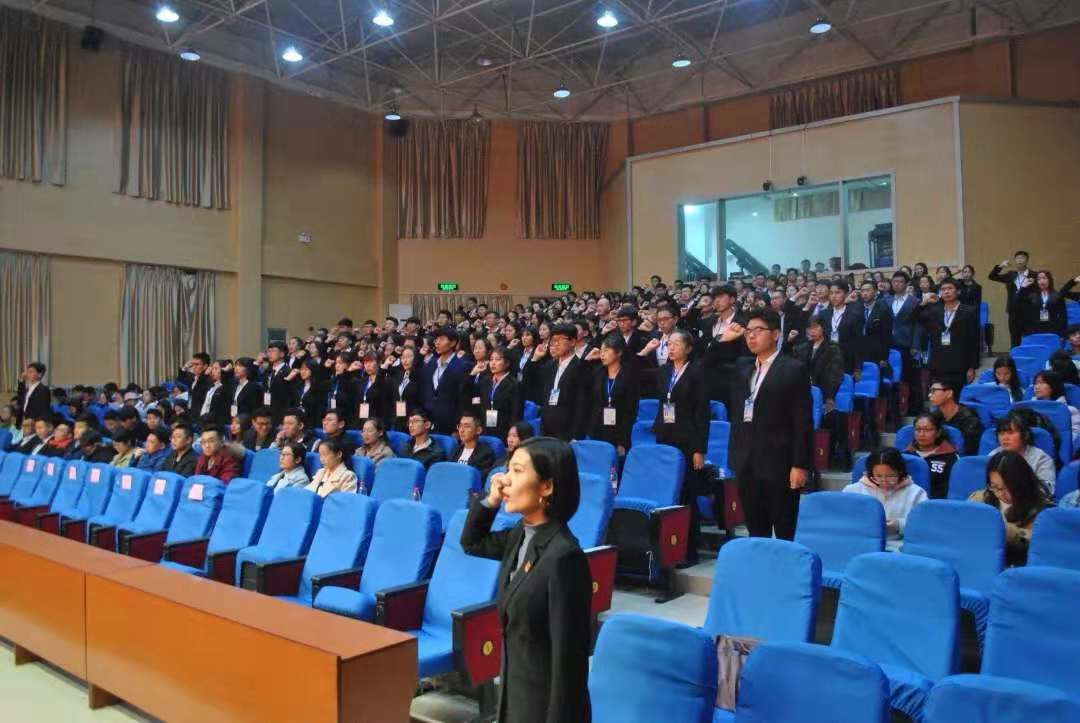2018年11月15日下午,学院学生工作总结表彰暨第十八届学生会成立大会在图书馆报告厅举行。学校党委组织部部长兼学院党总支书记李连成、学院院长曹慧、党总支副书记冯道俊、副院长张保仁、全体辅导员以及学校各二级学院学生干部代表、学院第十七届学生会主要学生干部、学院第十八届学生会全体成员参加了此次大会。