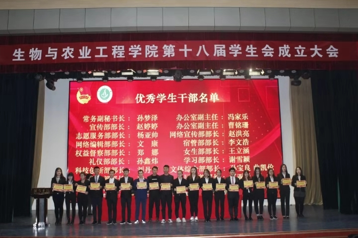 大会开始后,首先由第十八届学生会秘书长孙梦泽宣读新一届学生会骨干成员名单。随后,举行了第十七届学生会与第十八届学生会会旗交接仪式。学院领导为新一届学生会骨干成员颁发聘书,为学生会优秀干部颁发奖状。