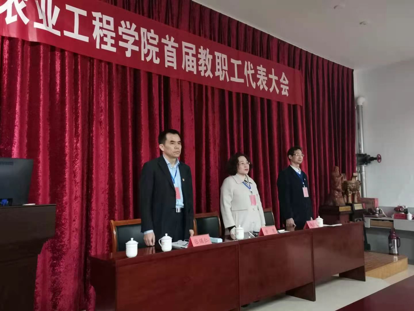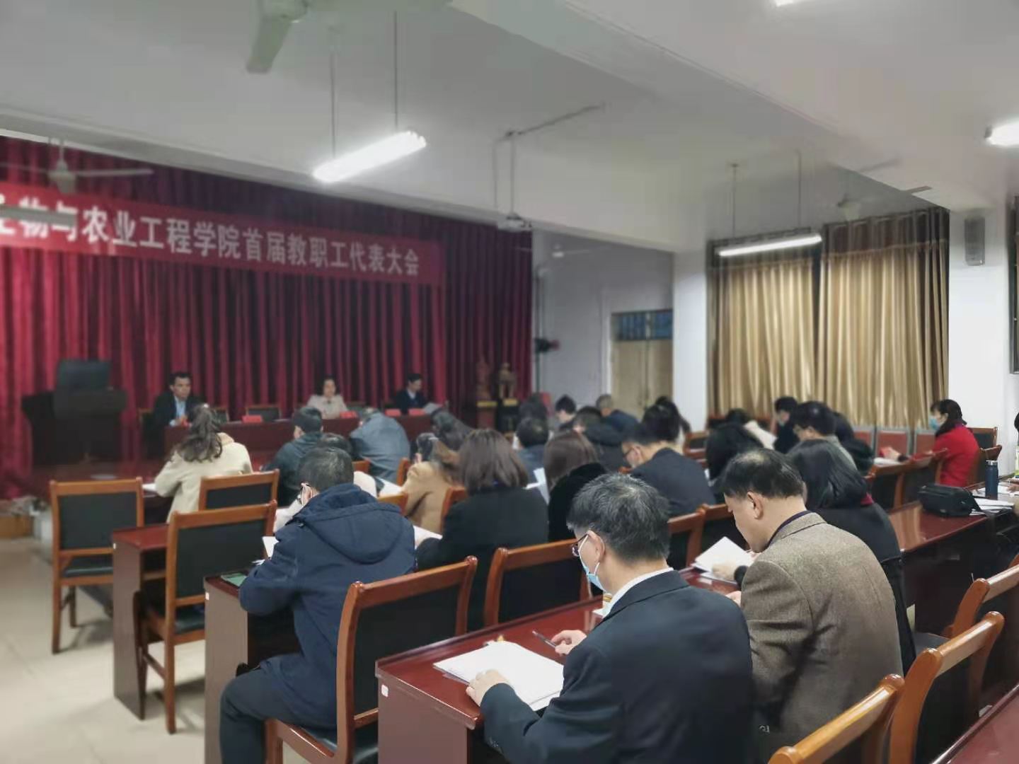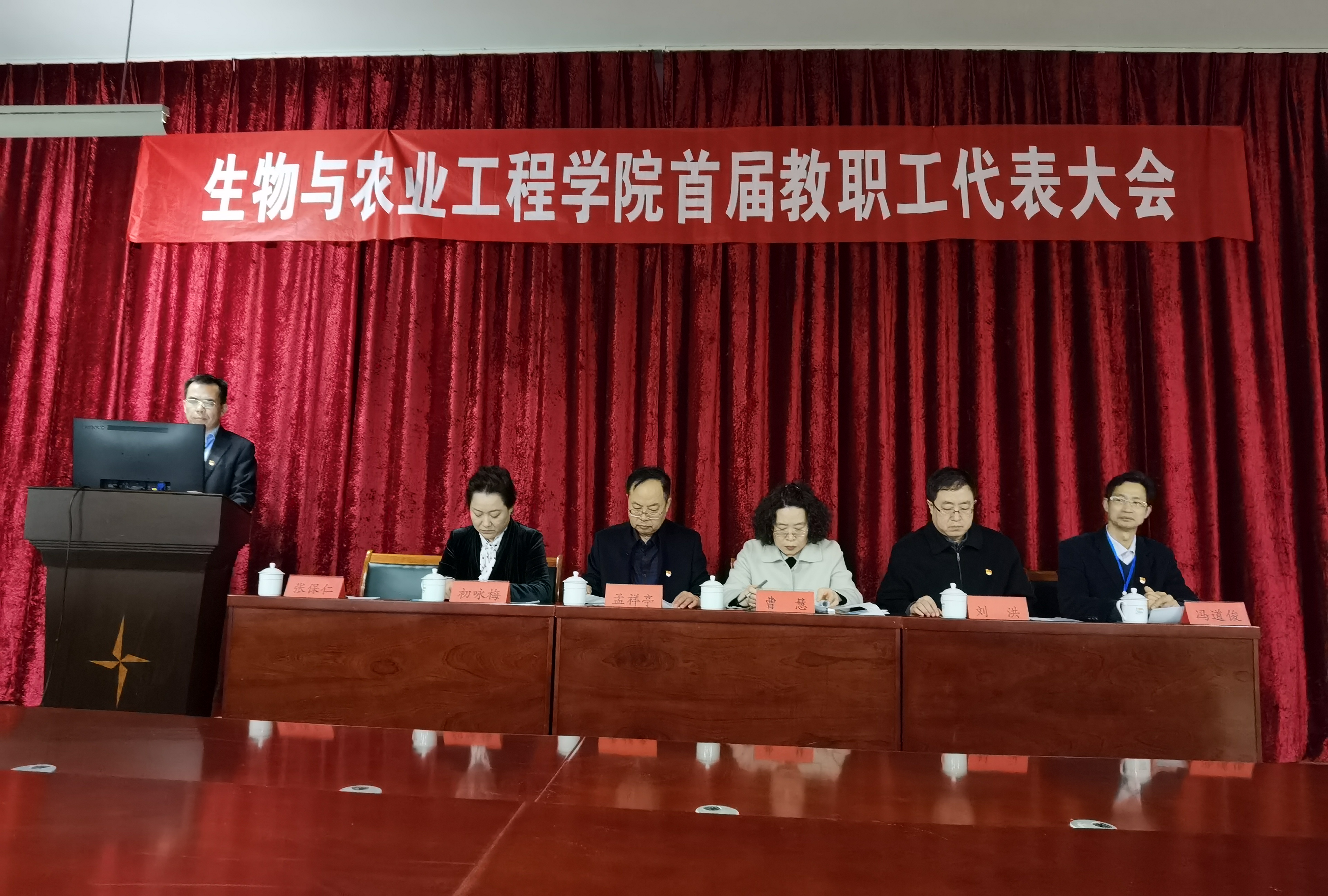 3月13日,生物与农业工程学院第一届教职工代表大会在人合楼8501会议室隆重举行。大会由学院党总支副书记、工会分会主席冯道俊主持,学院27名正式代表参加会议,11名教职工列席。学校工会主席孟祥亭、副主席初咏梅到会祝贺,学院党总支书记、院长曹慧出席。