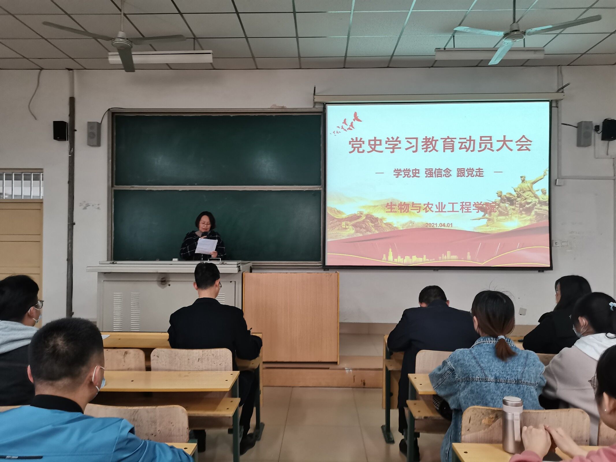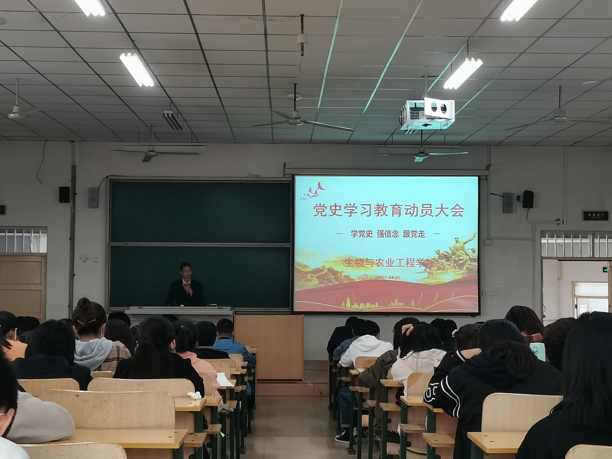 4月1日,生物与农业工程学院在8504教室召开全院团员青年“学党史、强信念、跟党走”学习教育动员大会,对学习教育工作进行全面动员部署。学院党总支副书记冯道俊出席会议并做动员讲话,学院团学工作负责人及全体辅导员到会,各班级、团支部骨干成员及学生会各部门负责人100余名同学参加了会议。