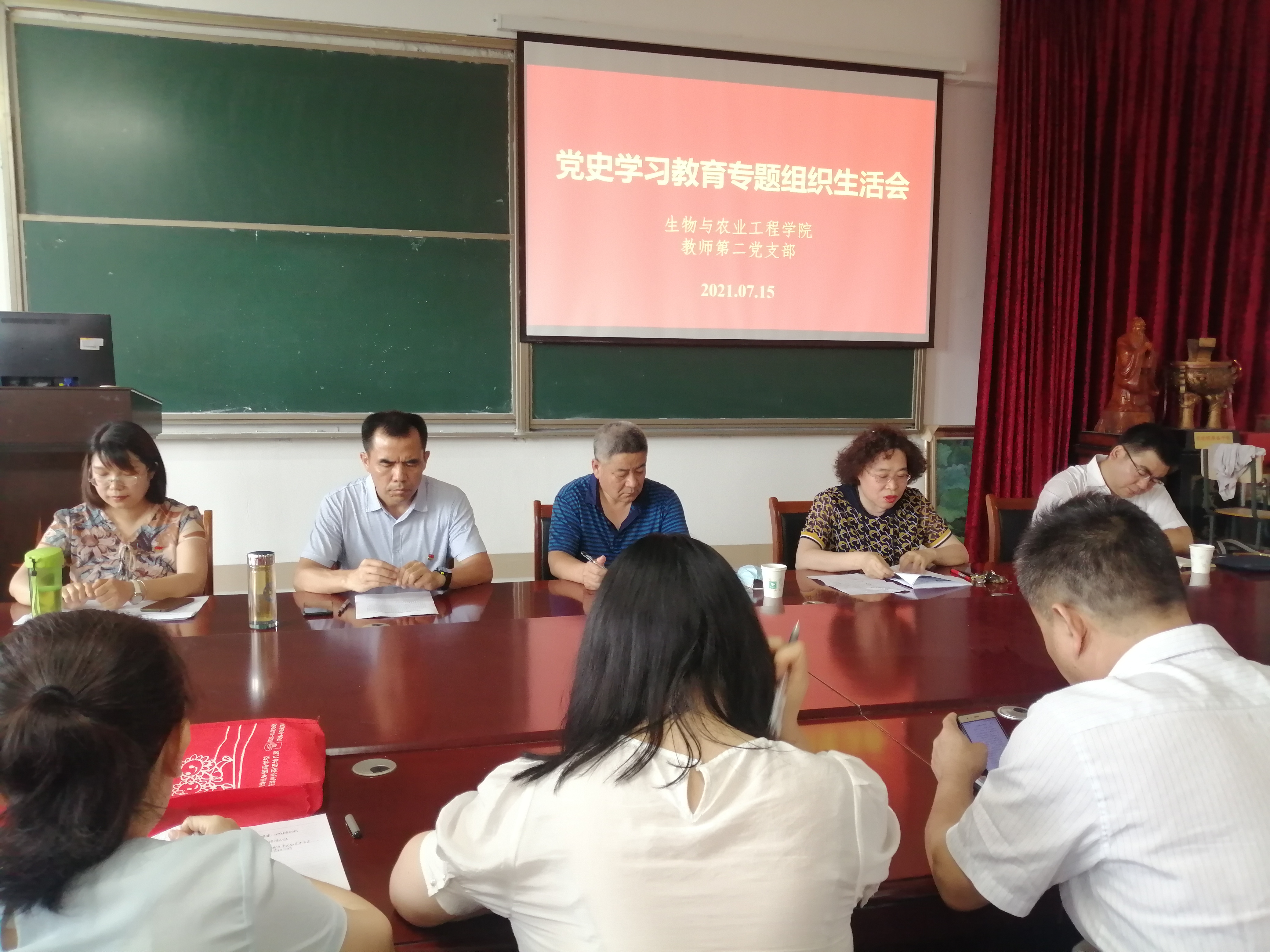 2021年7月15日下午,生物与农业工程学院教师第二党支部召开了党史学习教育专题组织生活会。学院党总支书记、院长曹慧,副院长张保仁以普通党员身份参加了本次会议,学校纪委、监察专员办公室崔玉平主任和王坤老师列席会议。支部共有党员23人(其中2名预备党员),实到20名,3名党员请假。