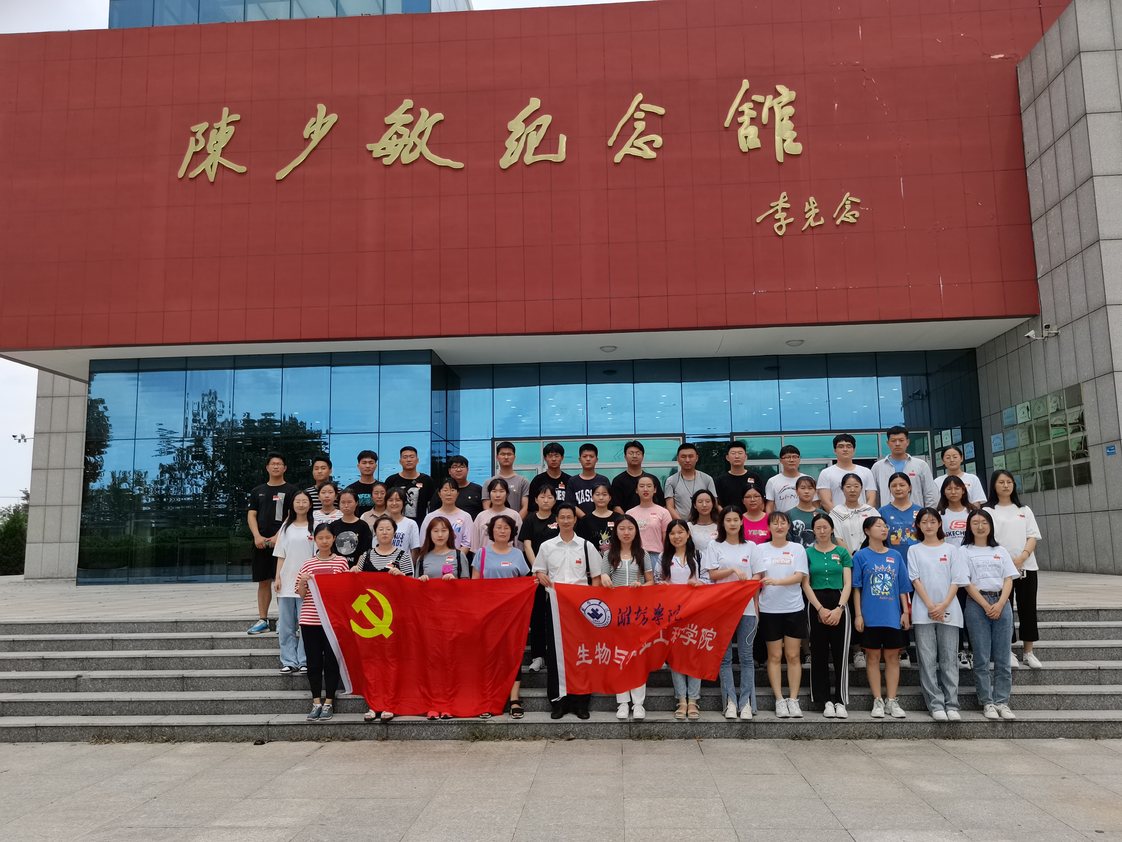 为热烈庆祝中国共产党建党100周年,继续深入学习党史,追溯红色记忆,体悟红色文化,继承和发扬党的光荣传统和优良作风,2021年7月16日,生物与农业工程学院党总支组织学生第一、第二学生党支部党员前往广饶《共产党宣言》陈列馆、寿光陈少敏纪念馆等地进行党史学习教育实践活动。学院党总支副书记冯道俊、学生第一党支部书记张骞、学生第二党支部书记孙海燕、党支部委员韩靖雯、谢丽及学生党支部全体成员参加了此次集中教育活动。