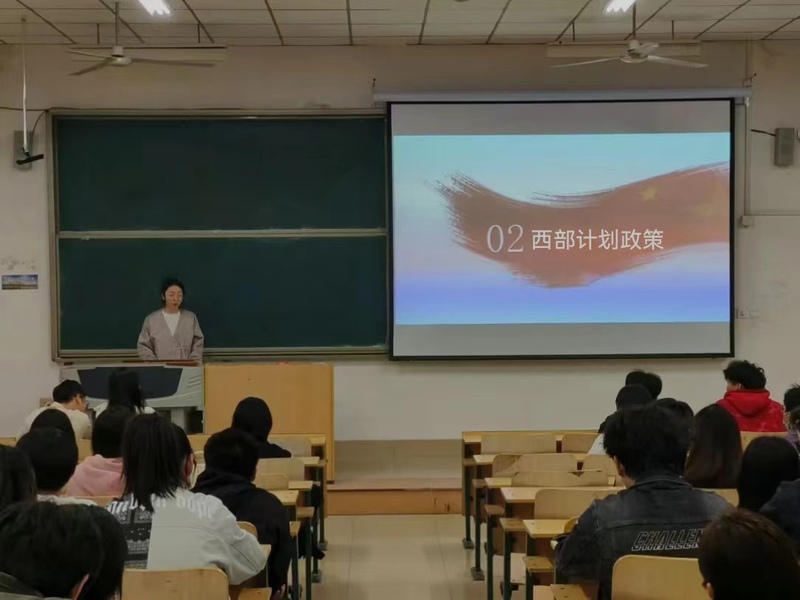 活动伊始,刘建辉老师为同学们介绍了西部计划的历史起源。西部计划,起源于2003年,该计划旨在引导和鼓励高校毕业生到西部基层开展志愿服务,促进西部教育、卫生、农技、扶贫等社会事业发展,同时为高校毕业生提供实践和就业机会。其次,刘建辉老师从招募对象、服务内容、服务期限、政策支持与保障四个方面总的概括了西部计划的主要内容,针对性的解决了同学们对于西部计划报名、审核、选拔等流程问题。