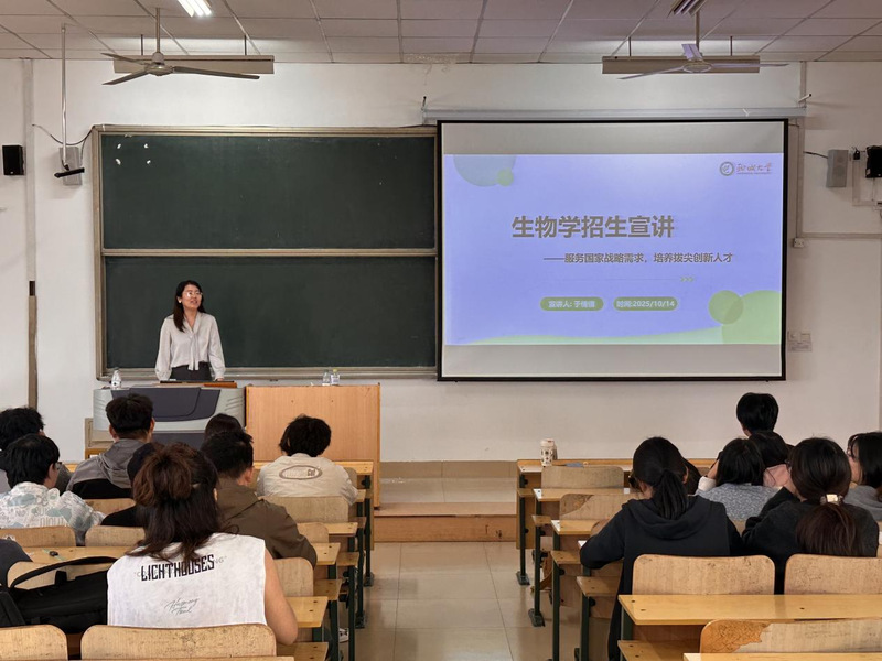 随后,农业与生物学院于倩倩副教授为同学们作了农业与生物学院研究生招生宣讲,内容详实、条理清晰,她不仅详细解读了生物学科的研究方向、特色优势以及最新的招生政策与报考流程,还介绍了学院的顶尖导师团队、前沿科研项目以及先进的实验平台条件。 为同学们明确了报考方向。
