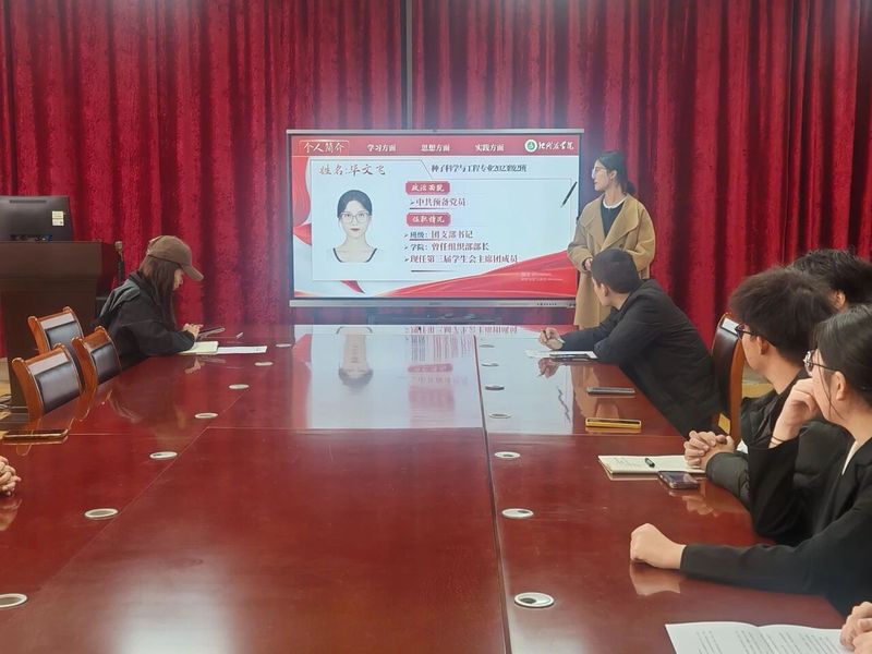 为展示学生综合素养,弘扬榜样力量。10月22日,现代农学院2025年度省政府奖学金候选人答辩会在人合楼8501会议室圆满举行,学工办主任王龙,辅导员刘建辉出席会议。候选人通过科研探索、志愿服务、学科竞赛等多元路径,全面展现了德智体美劳融合发展的成长轨迹,彰显了新时代农科学子投身乡村振兴、勇担时代使命的青春风采。