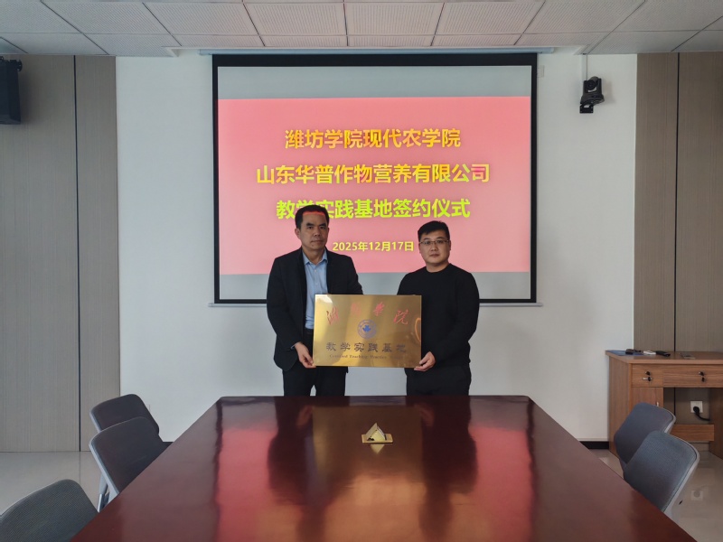 为响应国家产教融合政策号召,紧扣农业高质量发展需求,破解高校人才培养与企业实际需求脱节的难题,12月17日,现代农学院党委副书记、副院长张骞,现代农学院副院长张保仁,学工办主任王龙一行,先后赴山东华普作物营养有限公司、中创亿丰肥料集团,举行校企合作签约暨实习基地挂牌仪式,促进学院与行业骨干企业的协同育人合作实质性发展。