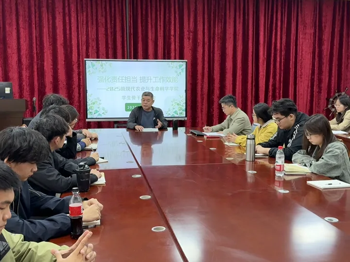 3月31日,现代农业与生命科学学院召开班级建设专项工作会议,由学院党委副书记张骞出席并部署工作,以及辅导员刘建辉和各班班长团支书参加本次会议
